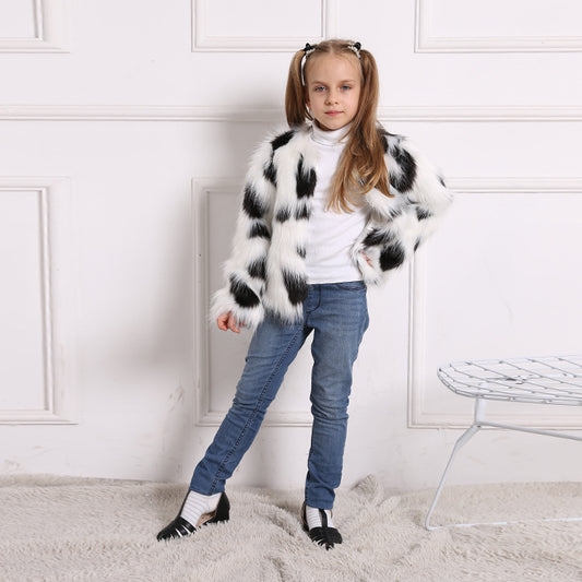 Faux Fur Middle And Large Girls Top Coat